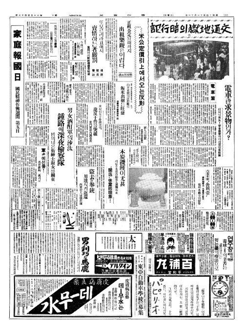 - 男女酒酊軍(남녀주정군)의沙汰(사태) 鍾路(종노)에深夜檢察隊(심야검찰대)
