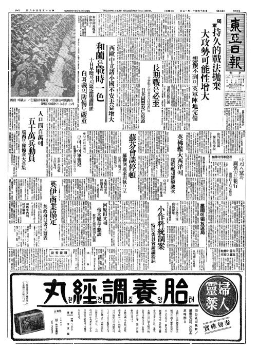 - 西歐中立諸小國不安去益增大(서구중립제소국부안거익증대) 和蘭(화란)은戰時一色(전시일색)