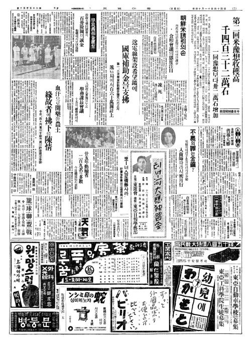 - 旱災義捐金遝至(한재의연김답지) 法政大學同窓會(법정대학동창회)서 百卅餘圓(백삽여원)의誠金(성김)