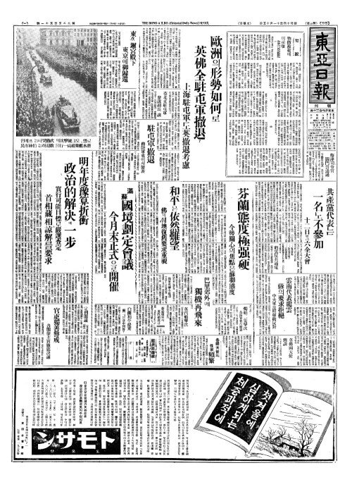 - 歐洲(구주)의形勢如何(형세여하)로 英佛全駐屯軍撒退(영불전주둔군살퇴)?