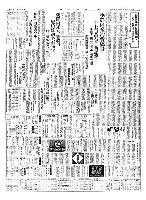- 朝鮮內米消費總量(조선내미소비총량) 千七百萬石(천칠백만석)으로新記錄(신기록)!