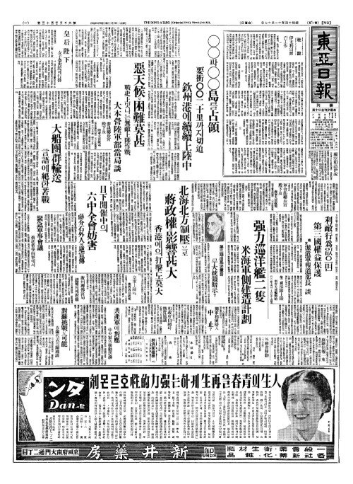 - 天津問題急速解决(천진문제급속해결)? 英(영)의對日接近態度顯著(대일접근태탁현저)