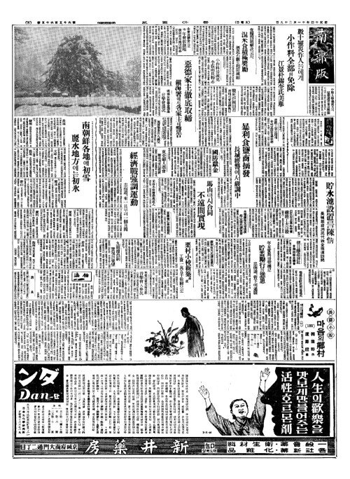 - 南朝鮮各地(남조선각지)에初雪(초설) 麗水地方(여수지방)에는初氷(초빙)