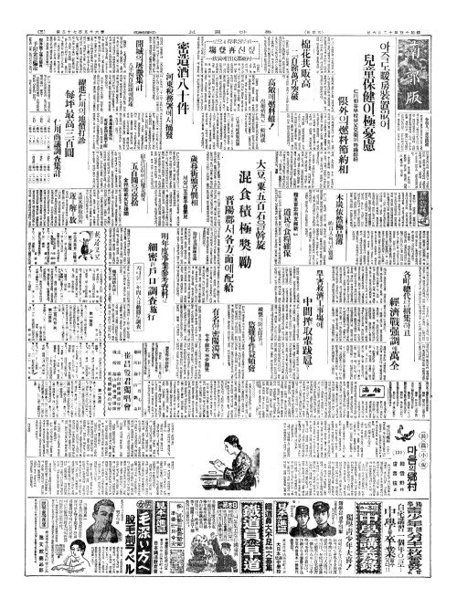 - 大豆(대두)、粟五百石(속오백석)을斡旋(알선) 混食積極奬勵(혼식적극장려)
