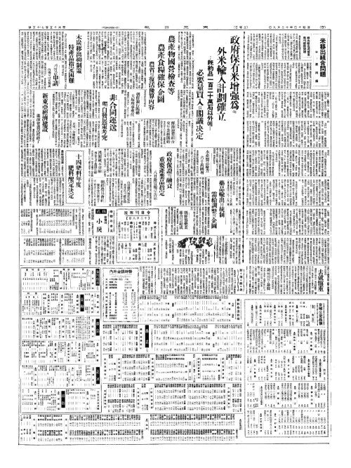 - 政府保有米增强爲(정부보유미증강위)해 外米輸入計劃確立(외미수입계획확입) =旣約品(기약품) 一百二十萬石以外(일백이십만석이외)에= 必要量買入(필요량매입)을閣議决定(각의결정)