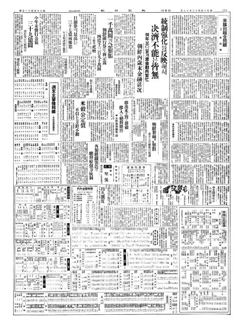 - 增稅收入(증세수입)은三千萬圓(삼천만원) 廿一日朝鮮稅制要綱(입일일조선세제요강)을决定(결정)