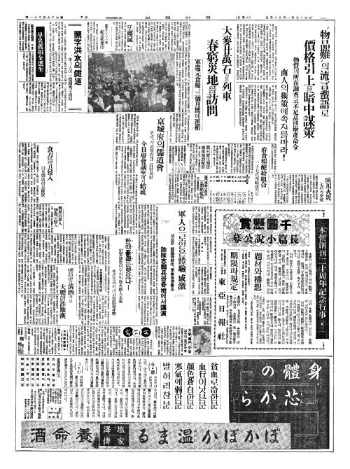 - "物資難(물자난)"의流言蜚語(류언비어)로 價格引上(가격인상)을暗中策謀(암중책모)