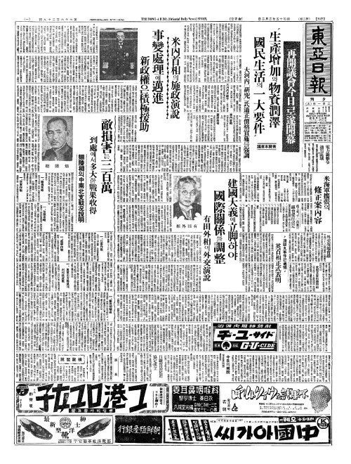 - 米內首相(미내수상)의施政演說(시정연설) 事變處理(사변처리)에邁進(매진) 新政權(신정권)은積極援助(적극원조)