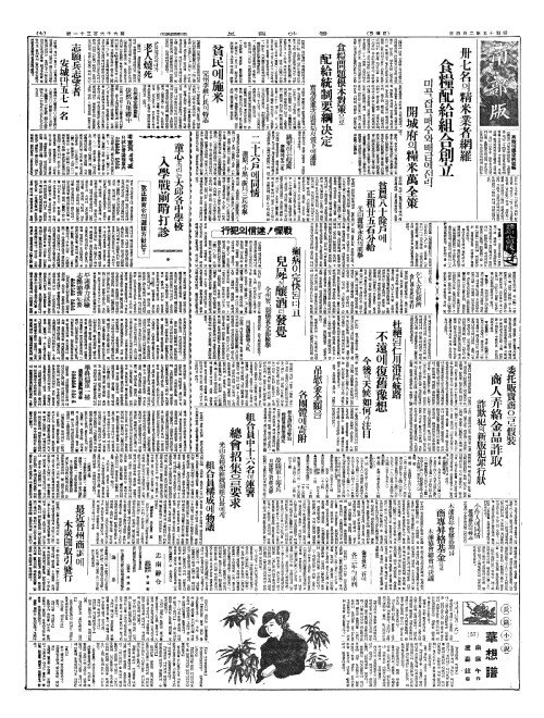- 卅七名(삽칠명)의精米業者網羅(정미업자망라) 食糧配給組合創立(식량배급조합창입)