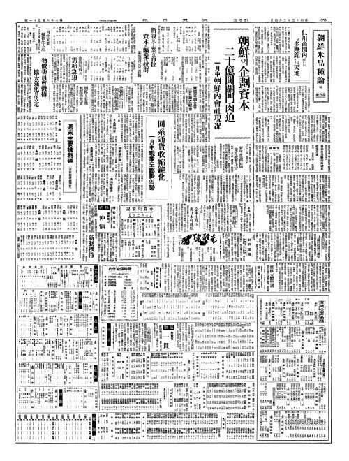 - 朝鮮(조선)의企劃資本(기획자본) 二十億圓關門肉迫(이십억원관문육박)