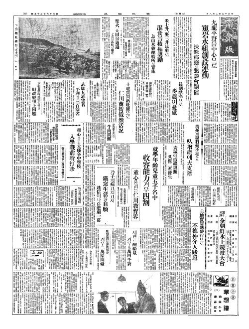 - 就學年齡兒童五千名中(취학년령아동오천명중) 收容能力(수용능력)겨우四割(사할)