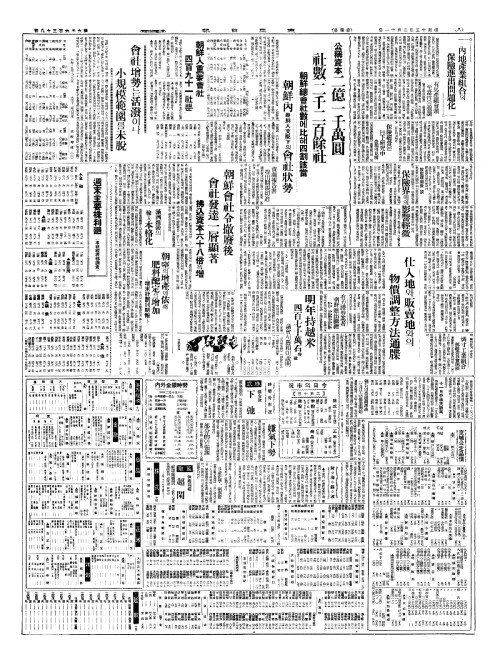 - 公稱資本二億一千萬圓(공칭자본이억일천만원) 社數(사삭)、二千二百餘社(이천이백여사)