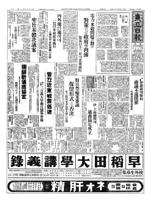 - 伊(이)、土兩國間(토양국간)에 通商協定成立(통상협정성입)?