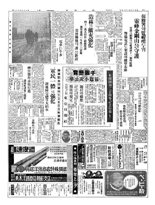 - 陸軍記念行事(륙군기념행사)에도2600年奉祝色(년봉축색)"軍民一體(군민일체)"를强化(강화)