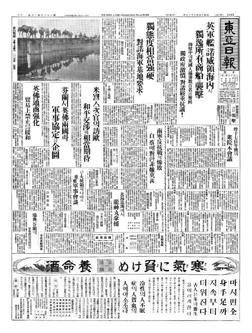 - 英軍艦(영군함)、諾威領海內(낙위영해내)서 獨逸所有商船(독일소유상선)을襲擊(습격)