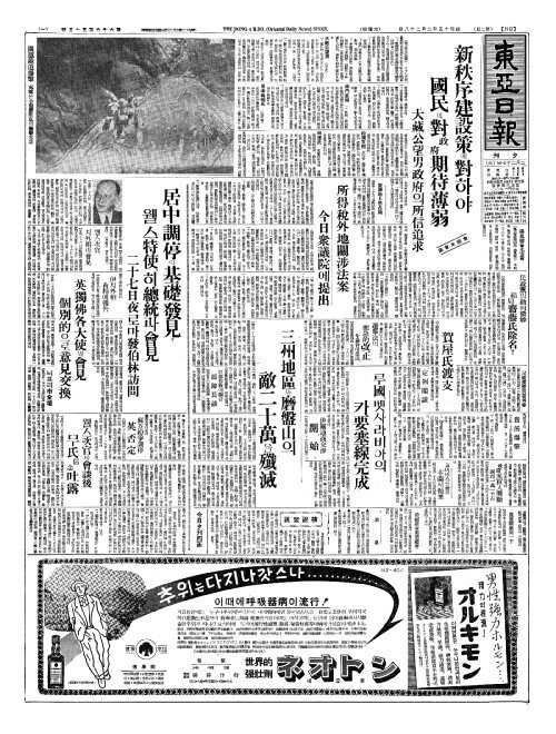 - 新秩序建設策(신질서건설책)에對(대)하야 國民(국민)의對政府期待薄弱(대정부기대박약)