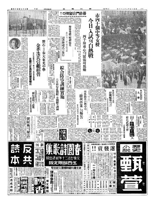 - 市內十個中等女校(시내십개중등여교) 今日(금일)、入試(입시)의白熱戰(백열전)