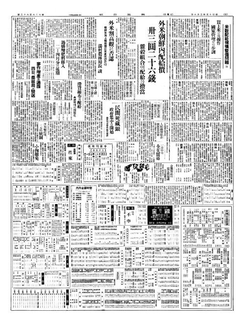 - 外米朝鮮內配給價(외미조선내배급가) 卅三圓二十六錢(삽삼원이십륙전)