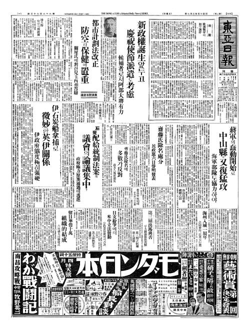 - 日獨提携强調(일독제휴강조) 히總統(총통)、鮎川氏(점천씨)와會見(회현)