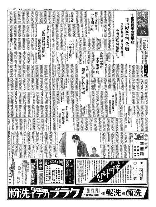 - 十四個農業實習學校(십사개농업실습학교) 新年度(신년탁)부터 授業料全廢(수업요전폐)