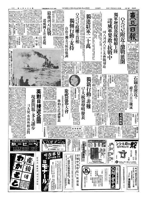 - 獨新行動(독신행동)을非難(비난) 루大統領聲明發表(대통영성명발표)