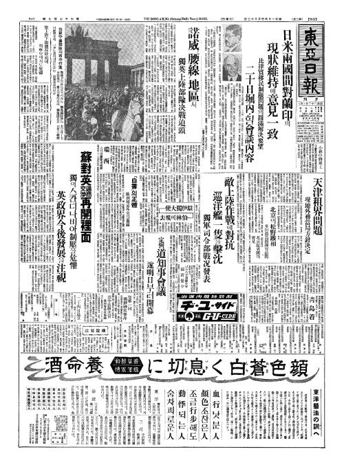 - 駐伊獨大使(주이독대사) 伯林(백림)에飛去(비거)