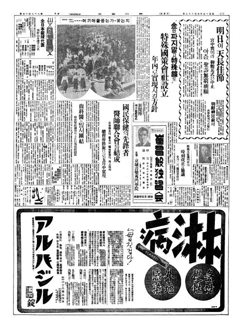 - 朝鮮神宮前(조선신궁전)과 各學校(각학교)에서式擧行(식거항)