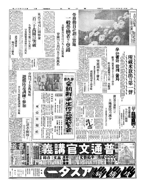 - 市內(시내)의十五萬家庭(십오만가정) 避難防毒訓練(피난방독훈련)에參加(삼가)