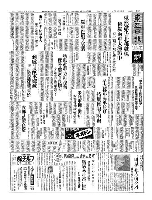 - 英首相明日(영수상명일) 戰况報吿演說(전황보고연설)