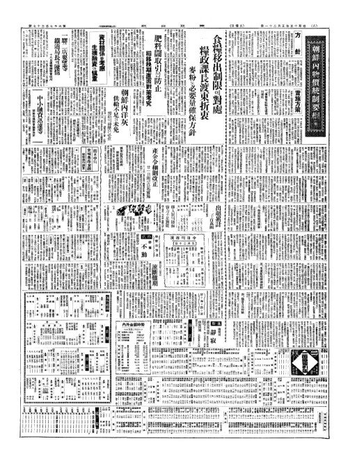- 朝鮮內物價統制要綱(조선내물가통제요강) (案(안))