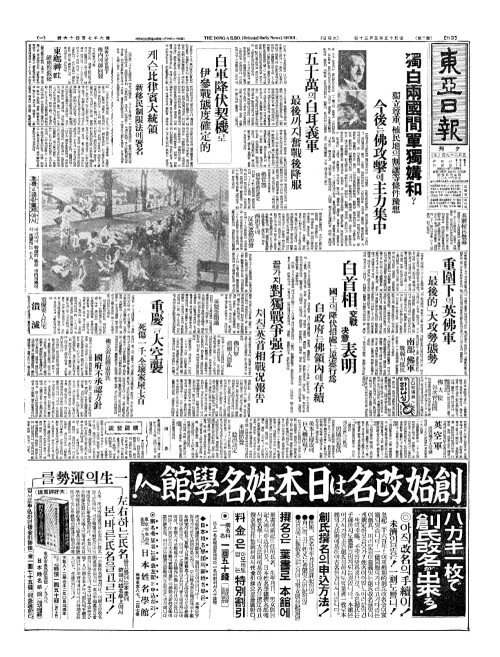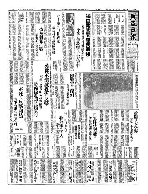 - 五十萬(오십만)의白耳義軍(백이의군) 最後(최후)까지奮戰後降服(분전후강복)
