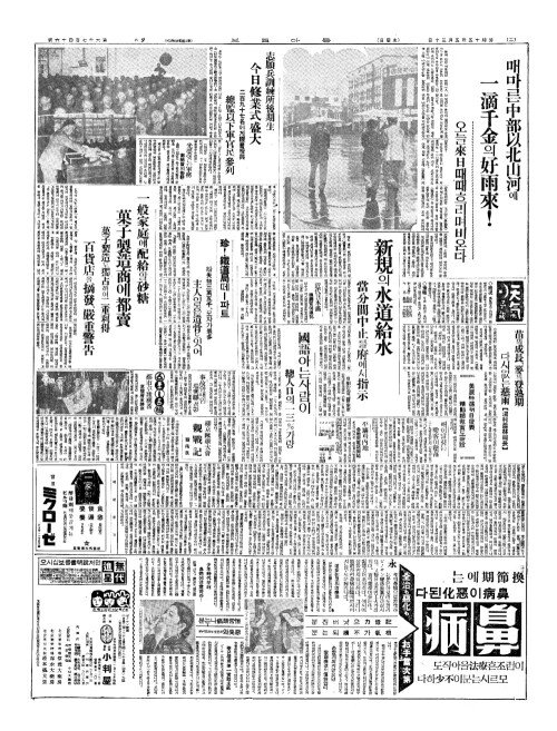 - 매마른中部以北山河(중부이북산하)에 一滴千金(일적천김)의好雨來(호우내)!