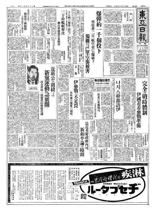 - 爆彈約一千個投下(폭탄약일천개투하) 死傷者二百(사상자이백)、航空省(항공성)도爆破(폭파)?