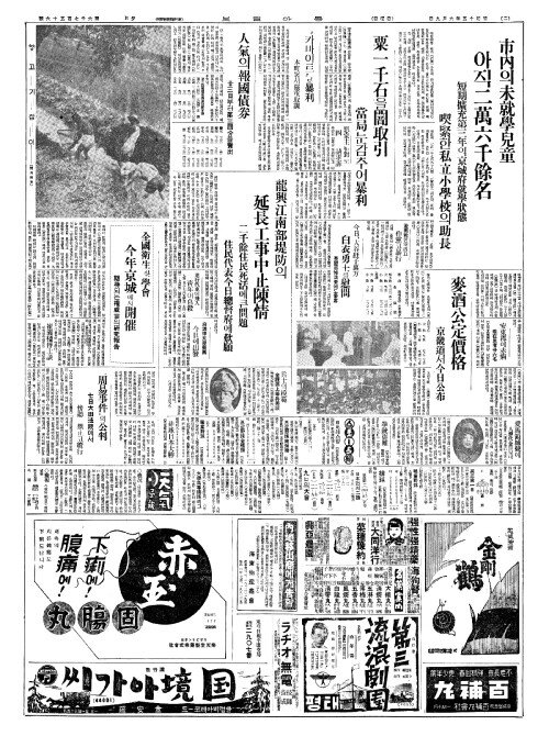 - 市內(시내)의未就學兒童(미취학아동) 아직二萬六千餘名(이만륙천여명)