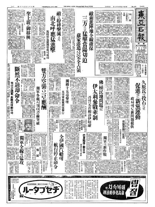- 英東南海岸(영동남해안)을獨機空襲(독기공습)