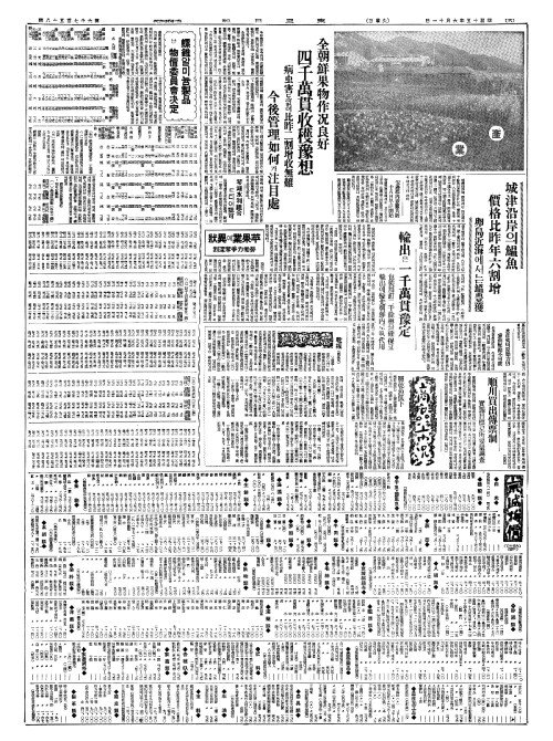 - 全朝鮮果物作况良好(전조선과물작황량호) 四千萬貫收穫豫想(사천만관수확예상)