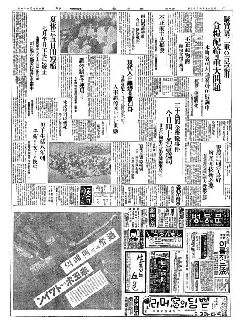 - 夏休(하휴)는五日間短縮(오일간단축) 七月半日工夫(칠월반일공부)는廢止(폐지)