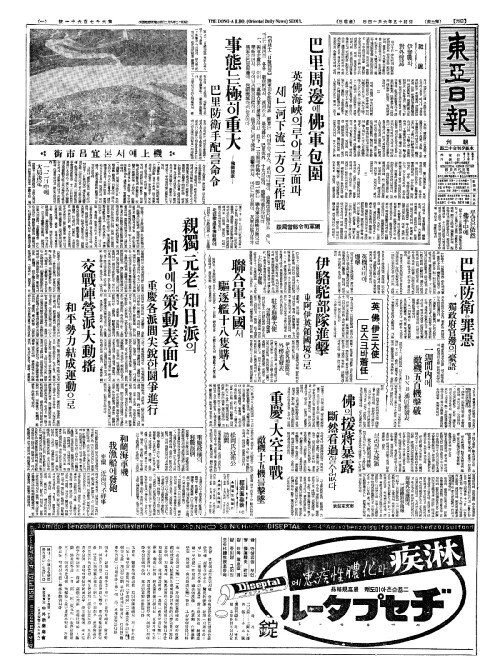 - 巴里(파리)?邊(변)에佛軍包圍(불군포위) 獨軍司令部當局談(독군사령부당국담)
