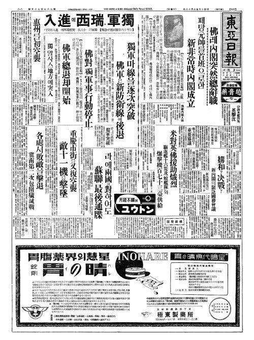 - 페탕新內閣出現(신내각출현)은 對獨媾和第一步(대독구화제일보)