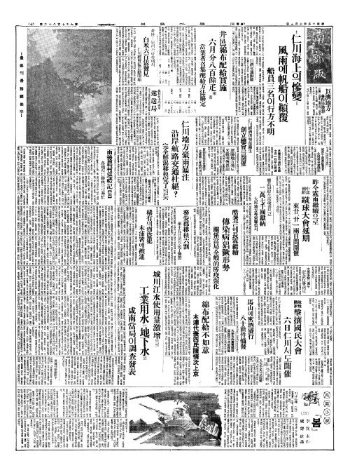 - 仁川海上(인천해상)의慘變(참변)= 風雨(풍우)에帆船(범선)이顚覆(전복)