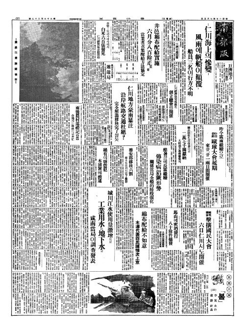 - 仁川地方豪雨暴注(인천지방호우폭주) 沿岸航路交通杜絕(연안항로교통두절)?