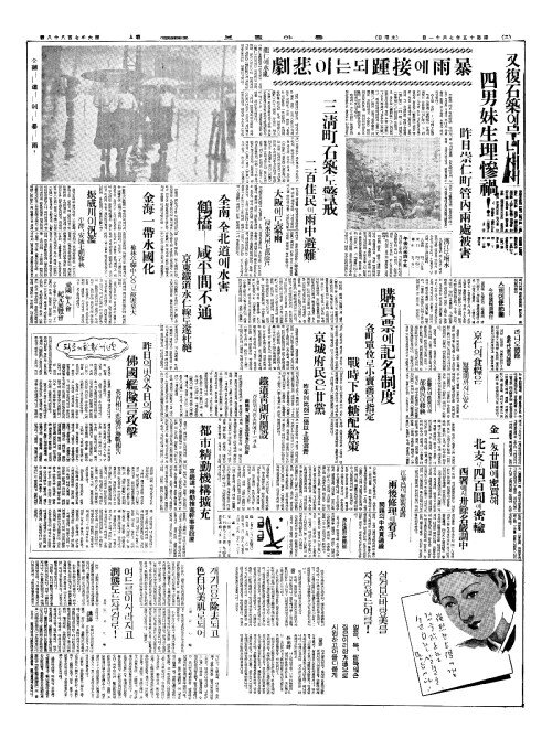 - 中部朝鮮(중부조선)에豪雨再襲(호우재습)