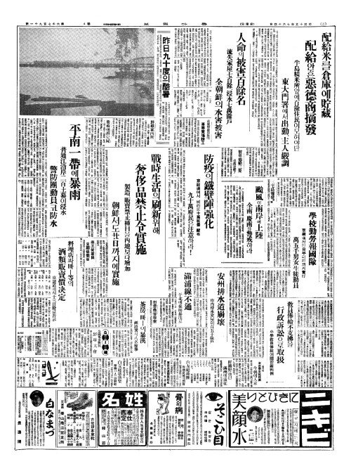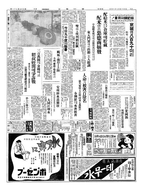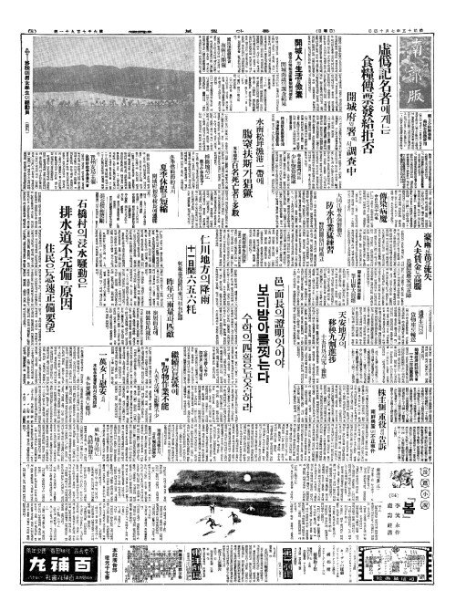 - 仁川地方(인천지방)의降雨(항우) 十一日間六五六粍(십일일간륙오륙모)