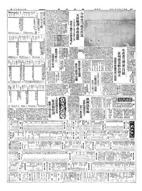 - 今年度(금년도)의棉花作况(면화작황) 天侯順調(천후순조)로豊收豫想(례수예상)