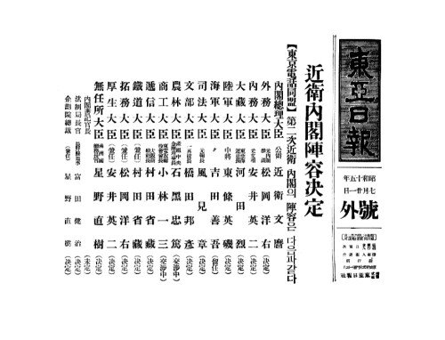 - 近衛內閣(근위내각)의閣僚面貌(각요면모) 今日中(금일중)에組閣工作完了(조각공작완요)?