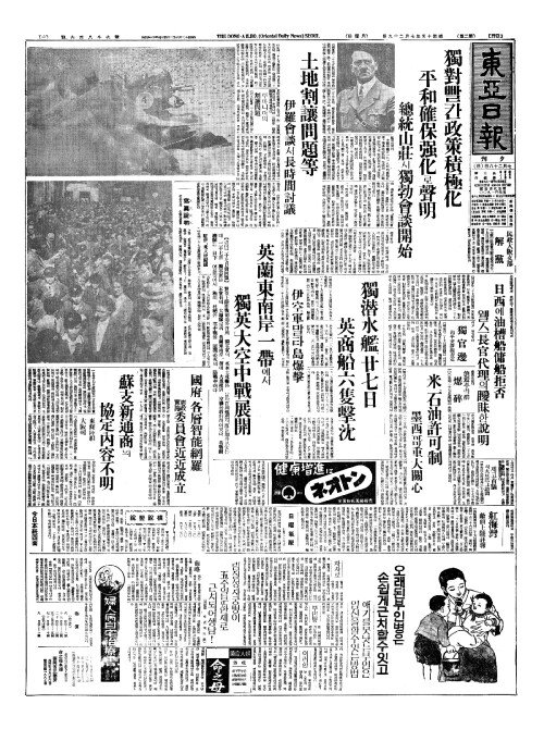 - 英蘭東南岸一帶(영란동남안일대)에서 獨英大空中戰展開(독영대공중전전개)