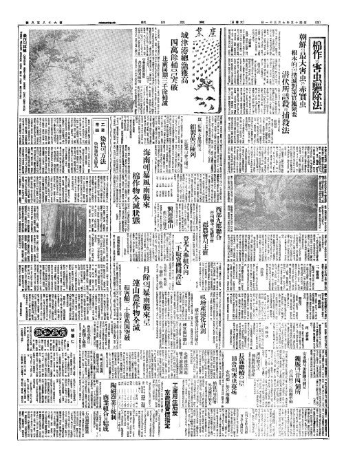 - 海南(해남)에暴風雨襲來(폭풍우습내) 棉作物全滅狀態(면작물전멸상태)