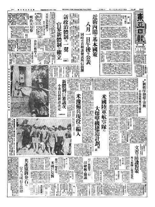 - 近衛內閣(근위내각)의基本國策(기본국책) 八月一日午後(팔월일일오후)에公表(공표)
