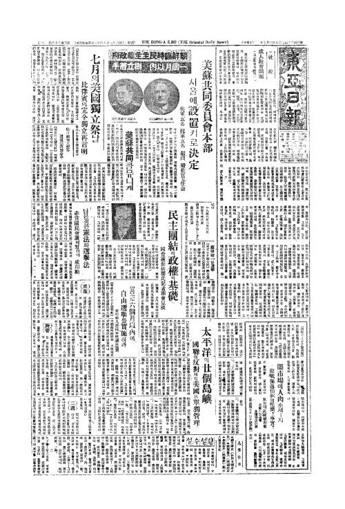- 七月(칠월)의美國獨立祭(미국독입제)날 比律賓(비율빈)의完全獨立再言明(완전독입재언명)