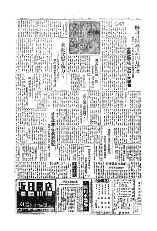 - 米糓收集(미곡수집)에協力(협력)토록 우리는同族愛(동족애)를좀더發顯(발현)하자 軍政廳要望(군정청요망)과市長(시장)의談(담)